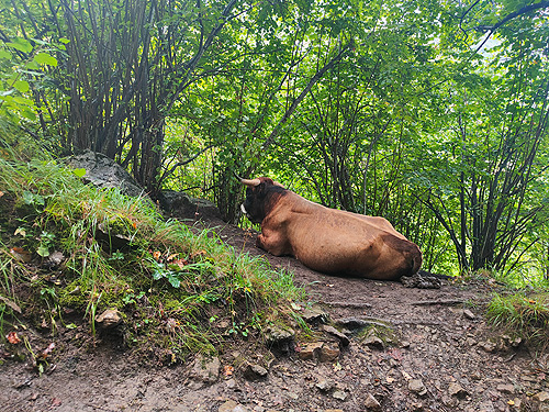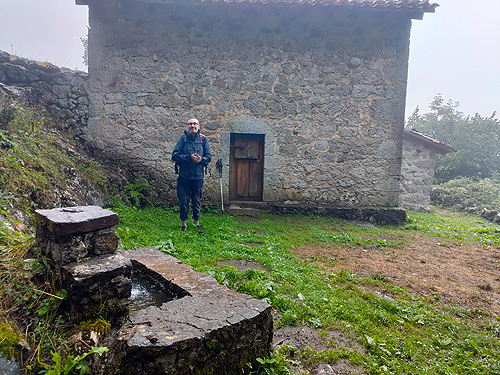 Però res de tot això va passar. Vam fer un bon esmorzar al Bar del Puente (dolç el Lluís i salat jo) i vam enfilar camí del Collado Pandébano. Ni 5 minuts havien passat que ja plovia, i boira cap amunt i també cap avall. Tot i així, vam fer 2 kms, la mitat del que pensàvem fer. No tenia sentit mullar-se per no veure res. Quan vam arribar a Bulnes ja no plovia tant, però ho seguía fent.