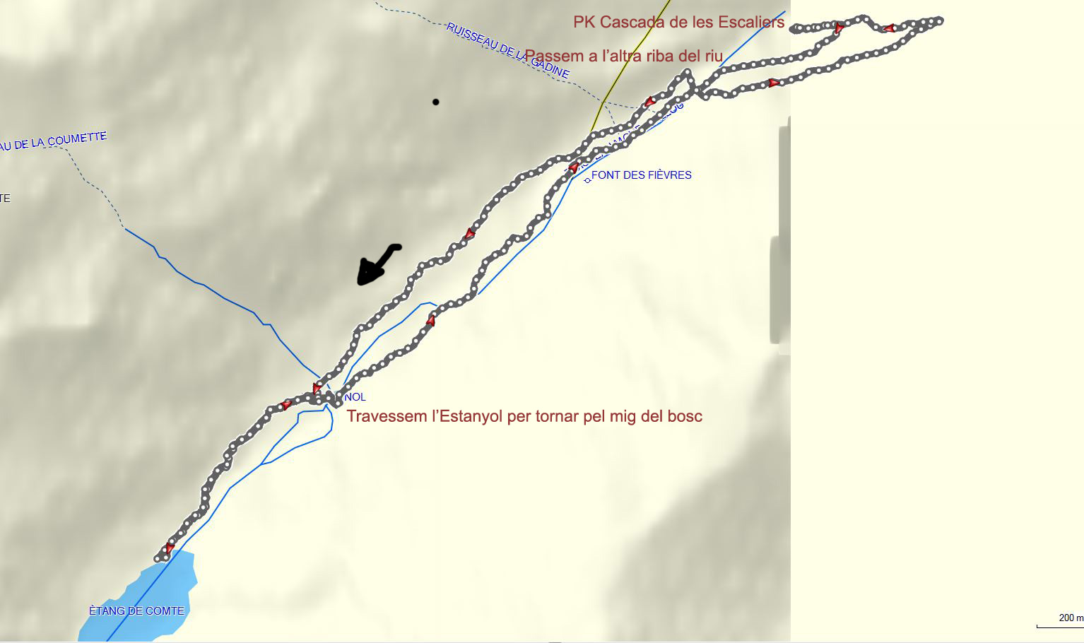 Primer hem de dir que el MAPS ens volia fer pujar a l'aparcament de la Cascada de les Escaliers per una tuberia, així com ho esteu llegint. Evidenment vam anar per la pista. Una pista amb un cartell de prohibit circular fins el 15 de maig. Vam passar igualment i el pk n'estava ple de francesos. Alguna cosa no vam llegir del tot bé.