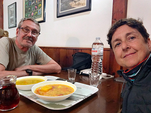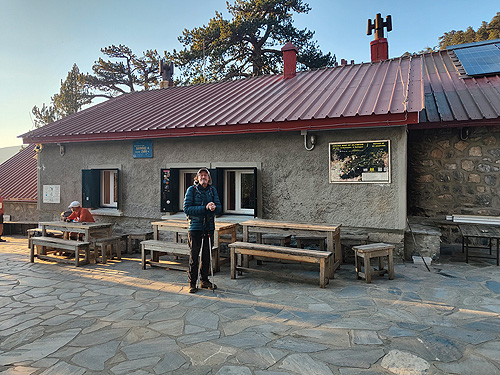Vam dividir la pujada en dues parts fent nit al refugi Refugi Spilios Agapitos (Zolotas) A, nit que va coincidir amb un eclipsi total de lluna. La primera idea era fer dues nits al refugi però vam decidir baixar fins al poble el mateix dir que vam fer cim. Val a dir que no em penedeixo pas de la decisió, però vaig arribar a Prionia molt, molt, perjudicada.