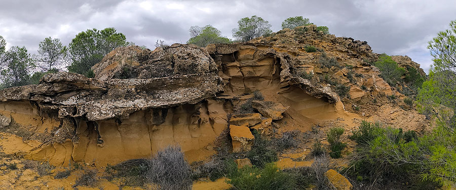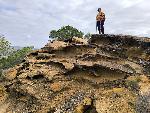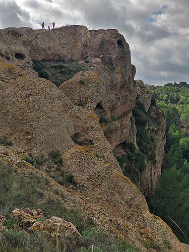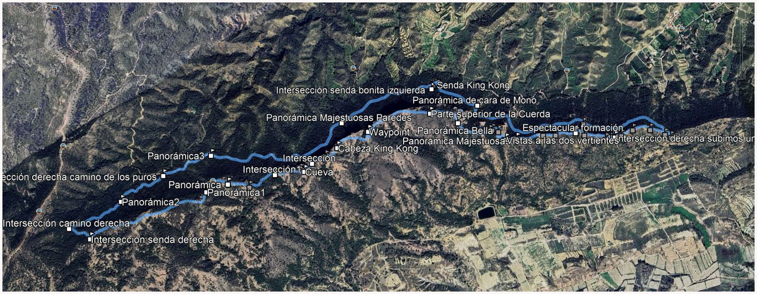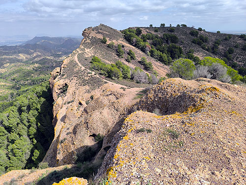 És una ruta bastant xula que ressegueix uns penya-segats. Primer per sota i després per la carena, amb l'afegit que quan vas per dalt, també veus la timba que queda als teus peus. El camí per la carena és un autèntic puja-baixa per salvar els promontoris que formen la serra. A més, hi ha coves, diverses formacions rocoses erosionades pel vent i per l'aigua i un parell d'arcs de pedra. Les panoràmiques són fantàstiques. La ruta està bastant indicada, a vegades amb cartells però majoritàriament amb fites al terra. La senda o muralla de King Kong està situada al Parc Regional de El Valle-Carrascoy, al sudest de la ciutat de Murcia. Es tracta de grans formacions calcàries irregulars que es poden veure des de lloc com El Relojero (antenes) o la Cresta del Gallo. És important seguir les indicacions del Camino de los Puros –pista en bon estat- per arribar al lloc on has de deixar el vehicle. Hi ha altres camins però o et deixen massa avall o la pista està tancada i només poden passar els veïns. I els noms que figuren al Google Maps com Senda Bonita o Rambla del Serrano, poden portar a confusió.