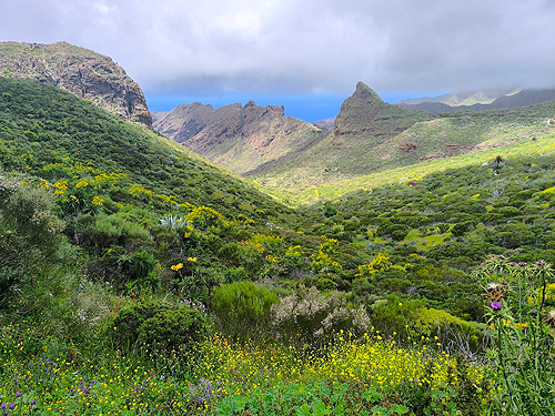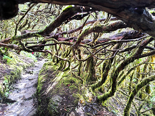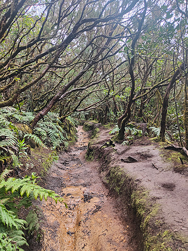 I realment és un camí preciós, bosc de laurisilva molt tupit, vas quasi de nit. Tot molt xulo fins que va començar a ploure. El roque Anambro, a dos terceres pert del camí al mirador, és l'últim que vam veure, per què al Mirador de Cabezo del Tejo, tot era boira i aigua. Tant plovia que una part de la tornada la vam fer per la carretera. Al poc d'arribar al cotxe, va deixar de ploure, quina gràcia.... La tornada a casa la vam fer per San Andrés (on vam dinar) i la platja de las Teresitas, de sorra blanca portada des del Sahara. I ens va sobtar que, amb la "fama" que té aquesta platja, no hi hagués al poble més hotels i més apartaments. Restaurants si. Està com aturat en el temps. Berta Solanas |