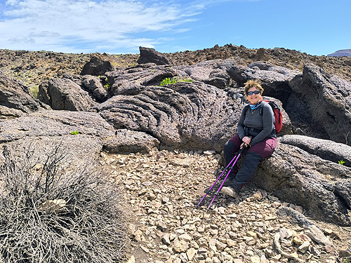 Seguim el camí, ara planejant, veiem -ara a la dreta- més i més formacions rocoses. I a la nostra esquerra colades de lava tipus pahoe hoe -abombades i poc rugoses-, com les que vam trobar a la Cueva del Viento.