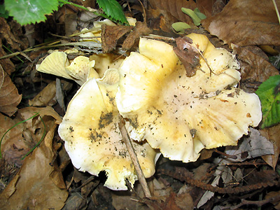 Barret: convex que s'enfonsa al centre com un embut, de 2 a 10 cms, llis i groc, però pot anar de blanc a taronja. Vores ondulat i a vegades lobulat.