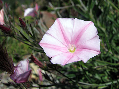 | És com una mala herba que s'enrama. Flors blanques o roses. |