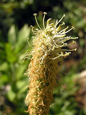 | Sembla una flor amb molts pètals però és una inforescència, moltes flors juntes. Es veu molt bé amb els 3 estams per flor que es veuen. Comprovareu que són del mateix tipus que els de les campanetes. I així les podeu distinguir del Plantatge Fulles linears, unes espècies més estretes que altres. |