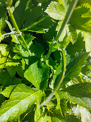 . Flors blau-lilós. Les exteriors allargades acabades rectes però amb entrades |