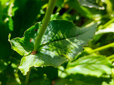 . Fulles abraçaderes, gran amb el limbe ondulat i acabades en punxa. |