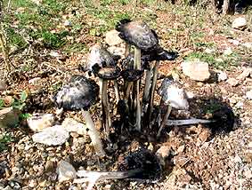 Tenim gana i fem un vermut en un pla del bosc ple de gespa. Fins i tot la mare del Lluís seu a terra tot i tenint cadires al cotxe, s'ho estan passant bé. Ens acostem una estona per la Masella i fem acopi de bolets de tinta per fer remenat quan tornem a Barcelona. DINAR DEL DIUMENGE: Acabat el dinar, i una altra sessió de micologia amb el Belisari. Abans hem repartit els bolets i hem fet un cistell només amb els que tenim dubtes per preguntar-li. N'hi ha molts d'aquests però segur que no ens enrecordem de les respostes que ens va donar. Serà en un altre moment. La tornada va ser l'únic que va fallar en aquesta sortida. De Ripoll a Sant Quirze de Besora dues hores, una esllavissada havia tallar un carril de la carretera. De fet, baixava aigua de tot arreu, cascades i cascades a sobre de la carretera i, fins i tot a dins dels túnels. Però a l'arribar a casa tots vam fer de sopar, truita o remenat de coprinus comatus. Berta Solanas