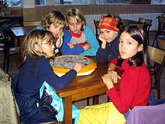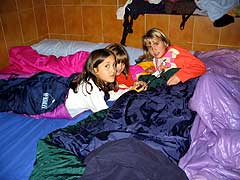 A la casa de colònies ja havíem estat, feia exactament un any. Però aquest cop ens va tocar una de les bordes que hi ha separades de la casa. La primera impressió va ser horrenda, de cau, i sense dutxes, només amb lavabo. Per dutxar-se s'havia d'anar a la casa gran, i estava tot nevat i gelat. Els llits estaven aixecats, molt aixecats, només 4 places eran a ran de terra. Com a cosa bona, tenia una mena de "saleta", amb una gran taula i bancs que ens va anar molt bé. Al final, realment vam estar a gust. Vam organtizar els esspais i els bultos de manera molt ordenada i tots li vam agafar gustet a això de pujar a les alçades per dormir. I anar a dutxar-se era com una altra aventura.