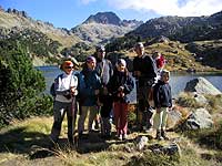 Per tornar s'imposa el criteri dels que volíem fer la volta per l'estany Llong i passar al costat de Colomèrs per no fer el mateix camí. Només el temps ens podia fer recular, i uns núvols amenaçadors ens fan dubtar, encara que tots dos itineraris són d'una llargada similar. L'arribada al Llong, un altre maravella de la natura amb el circ de Colomers i el Ratera al fons, ens depara l'única foto de tot el grup de la sortida. A la baixada el Lluís porta la Meritxell, així l'Edu pot controlar millor els seus genolls. La Marta i la Rut fan d'escortes i no se'n separen ni un segon.