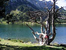 I a caminar. I a buscar bolets, que per data i zona havíen d'haver. En una hora(veure fitxa tècnica) ens vam plantar al llac de Laurenti, preciós pel llac, per les vistes del Roc Blanc, per les fotos que es podien fer, per les flors que hi havia, per tot. Després el camí anava agafant verticalitat, el bosc desapareixia i es convertia en tartera. Espai que les marmotes aprofiten per fer els caus i amagar-se dels depredadors.
