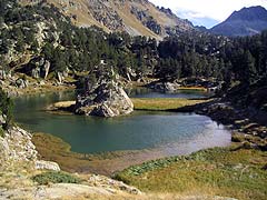 La inclinació es fa més forta (els nens més petits en algun noment pugen de quatre grapes) i s'arriba al llac de Lòssa, es travessa el pla fins al fons (deixarem a la dreta el rierol que puja directe a l'estany de Colomèrs). El camí tornar a pujar fort fins l'estany Cloto, una maravella amb illeta al mig. A mig estany girem a la dreta deixant el rierol que porta les aigües del Llong al Cloto a la nostra l'esquerra. Quan som als seus peus també el deixem a l'esquerra i ens dirigim al Collet Cloto des d'on veiem, cap l'oest el refugi de Colomers i cap a la dreta l'estany Cloto. Iniciem la baixada, a la dreta hi ha una zona l'escalada. Si no volem anar al refugi i a veure el llac de Colomers, tornem a girar a la dreta i baixem fins a l'estany de Lòssa. La resta de la tornada es fa pel mateix camí. |