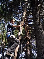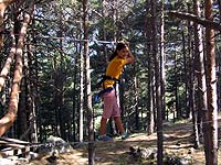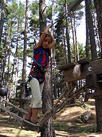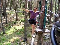 Feia temps que volíem provar-ho i ho vam fer en un bosc al costat del llac d'Engolasters, a Andorra, a l'Alt Urgell, on èrem, no hi ha cap instal.lació d'aquest tipus. Hi ha tres itineraris. Un per a nens fins als 10 anys i dos per adults amb diferents dificultats però que es poden fer sense problemes: tirolines, ponts de mico, troncs que es mouen, lianes, etc. Cadascún d'ells dura aproximadament entre 3/4 d'hora i una hora. Si es fa corrents, 15 minuts. La Marta va fer el de petits i la Rut, el Lluís i la Berta el d'adults.