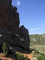 Duiem les cordes però no ens vam enfilaren sèrio. El que sí que vam fer és anar a "inspeccionar" una zona d'escalada molt propera a Coll de Nargó. A l'oficina de turisme de La Seu d'Urgell tenen un petit croquis de totes les vies de la zona. El camí arriba fins a Coll Piquer tot i que nosaltres només vam anar fins a la Portella (les nenes no volien caminar per res del mon). En general les vies són difícils però hi ha alguna de 4rt. Encara que no es vagi a escalar és un passeig curtet a una zona rocosa molt espectacular. Al poble vam dinar en un altre restaurant, el Tahussà a la carretera d'Isona, (tel. 973 38 30 74). Potser una mica més car que la Fonda del Llac però també molt bó.