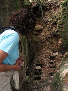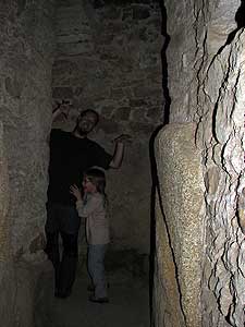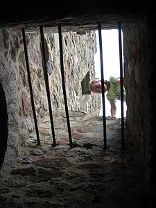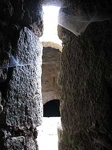 I quan ja marxàvem, a la platja, de compres o Barcelona segons qui parlés, va venir l'estona més divertida del dia. La visita al castell. Primer trobar l'entrada. Ningú diria on és. En un castell del segle, una porta metàlica, ni que sigui per dissimular lo deixat que està ho podien tenir millor. L'home que ven les entrades i el garito on està, de barraca i destartalada. I després, tota la resta. És un laberint on no saps mai per quina porta sortiràs, tot conecta i res és lineal. Hi ha trams que estan encara bé, altres molt modificats, altres plens de pintades, sense llum, amb ratpenats, trossos caiguts o trencats, etc. Però tot el que consideraríem negatiu en un castell que visitéssim, aquí tenia la seva gràcia per què una cosa al costat de l'altra, tot inesperadament barrejat. La part superior no es pot visitar, imaginem-nos com està. Aquí la mostra: