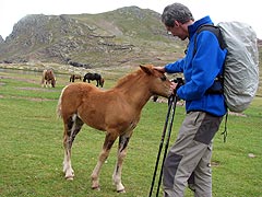 Fer cim ens costa uns 3/4 d'hora més. A dalt, el Midí es deixa veure una mica millor. Ens entretenim una mica identificant les valls i les muntanyes de l'oest, d'Osca a Navarra, i veient com la boira puja i baixa i es fan i es desfan els mars de núvols per sota nostre. La pluja ens dóna una bona estona de treva. Ens deixa dinar, jugar amb els cavalls a l'Ibon i encarar el tram inferior de l'excursió. Però tot i així, quan decideix que ens mulla, ens mulla i força. De fet, l'amenaça de pluja era tant evident que ni ens acostem a la cascada de la Rinconada, on les aigües dels ibons d'Anayet es precipiten i formen el riu de la Canal Roya. Arribem al cotxe bastant xops encara que les motxiles estant totalment seques.