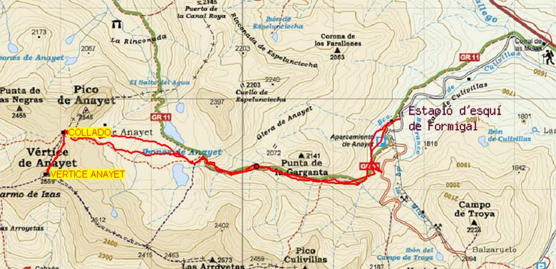 Havien anunciat un canvi de temps però malgrat tot el matí es va aixecar sense pluja. Els Gabarró-Solanas érem a la zona de Sallent de Gàllego (Osca) passant una setmaneta. A les 6 amunt i en poc més d'una hora ja començàvem a caminar. La primera part de la ruta és bastant plana, fins que el camí, el GR-11, gira cap a la dreta.