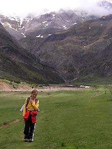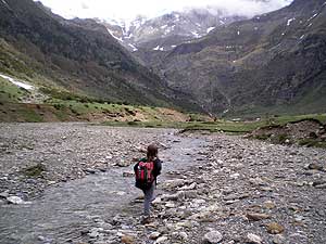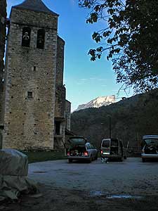 Un cop a Ainsa continuem fins a Bielsa. Just passat el poble hi ha l'indicador, a l'esquerra, de l'entrada a la vall i el parador de Pineta.