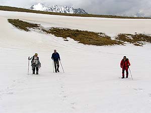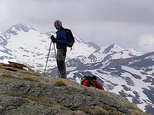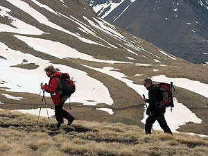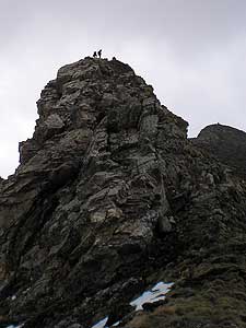 Els walquis ens van permetre tenir-les controlades i saber on eren en cada moment. L'Adela, que ja s'havia aixecat malament, estava amb elles. La resta tranquils i cap a munt. La pujada es fa a poc a poc, és llargueta. De fet, fas part del camí per pujar al Bachimala, tant si ho vols fer per la via normal, com si vols pujar per la Punta del Sabre. Si arribàvem amb prou forces teníem intenció de pujar fins a l'Ixabre (2.700 mts) però vam arribar quasi al límit i van tirar avall. És una pujada sense dificultat excepte quan arribes a la cresta just abans de fer cim que hi ha dos o tres pasos complicats i aeris. La Montse no s'ho va veure clar i ella i l'Ignasi van girar cua. Llástima perquè només quedaven 100 metres i ja hi eren.