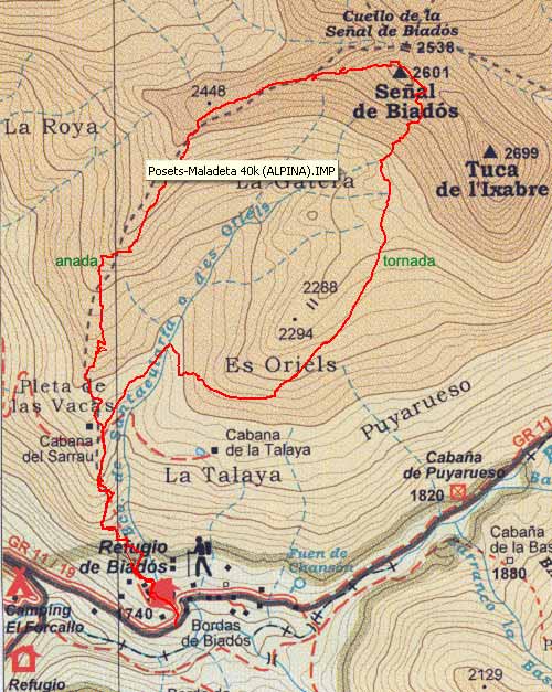 Un cop a Ainsa continuem fins a Salinas on trobarem els indicadors a Plan. Passem aquest poble i també San Juan de Plan. Quan s'acaba la carretera continuem per la pista. Els indicadors diuen Biadós i Campamento de la Virgen Blanca.