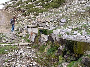 De baixada hem de desfer la pista fins que en una de les curves molt pronunciades a l'esquerra, veiem que la pista segueix també cap a la dreta i que hi ha una tanca metàl·lica (oberta). En uns minuts trobarem una gran cascada. Travessem i uns metres més enllà, una indicació ens farà deixar la pista per endinsar-nos en un corriol que va paral·lel a la caiguda del riu. Ja al final podem anar cap al parador (no està massa clar el desviament) o cap a l'aparcament oficial.