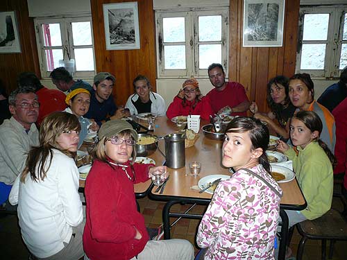 Abans però havíem sopat. I, la veritat, no era el que es diu un sopar de muntanya, però, ja se sap, érem a França. La sopa, transparent. El tall amb cuscús d'acompanyament i bastant comí. Els grans si, però les nenes haguessin preferit alguna cosa menys sofisticada. Amb tot, el pitjor de tot va ser l'esmorzar. No l'havíem d'haver demanat. Pa supersec, llet en pols imbebible, cafè infame, ni una madalena, ni una galeta, ...... |