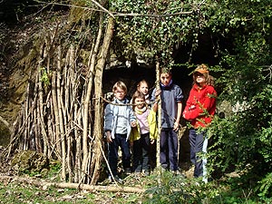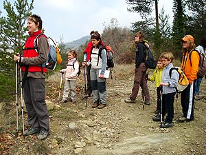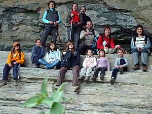 Era la sortida alternativa a la ferrada Teresina -Montserrat- per a aquells a qui no els agraden les ferrades, són massa petits o no tenien prou nivell per fer-la. La idea d'anar a les Baumes del Teixidor la van donar des de Gurb. L'Àngela, l'àvia, ho havia comentat quan vam anar al Pont Cabradís, a l'octubre, ja que ho havia vist a TV3 en un reportatge. Així, a les 10:30 i ja esmorzats ens vam trobar a la plaça Bisaura de Sant Quirze de Besora, els Gabarró-Solanas (sense el Lluís), els Rigola-Solanas al complert i la família de les Angeles (Àngela, Mia i Àngels) amb el pare, el Dídac.