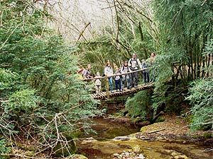 La tornada és super curta. Seguim la pollancrera (d'esquenes a la bauma cap a l'esqerra) i en uns minuts trobem el pas a gual de la riera. Arribem d'hora als cotxes i decidim acostar-nos als Bufadors de Beví, un altre espectacle de la natura. BUFADORS DE BEVÍ A les rutes de la revista Descobrir també surten els bufadors però vam anar pel camí que havíem fet en una altra sortida i que podeu llegir clicant aquí. La Rut, la Irene i la Marta, que ja havien estat es van quedar als cotxes. La resta, cap als Bufadors. És una zona amb cavitats subterrànies, algunes explorades i altres no, per on surten a l'exterior bufarades d'aire fred. És per a sentit sensacions diverses: veure com al tirar fulles surten del forat, com et congeles a l'acostar-te a un forat, etc. És una àrea de bosc molt humit, amb molta molsa. La diferència i la singularitat d'aquesta zona es nota més quanta més calor fa i quan tots els faigs tenen fulla. Aleshores sembla que el dia es faci quasi de nit. Ara, al març la diferència era menor. El camí per aquest tram dels Bufadors acaba quan trobem la roca de la Serra de Beví. És com una placeta. A la dreta un passadís de roca (mínim 15 metres d'alçada), a l'esquerra més obert. En total, des dels cotxes, una mitja horeta. No deixeu d'anar-hi si hi sou a la zona. Berta Solanas