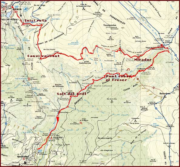 I als desnivells s'ha d'apuntar que entr els punts assenyalats hi ha continus puja-baixa de manera que l'acumulat de pujada s'acosta als 600 metres |