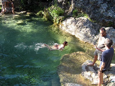 A la tarda, després de dinar molt bé al restaurant de Capafonts, ens vam anar a banyar al riu Brugent, a unes basses solitàries -no al juliol ni a l'agost-, amb un aigua que tallava la circulació. Un paisatge de luxe.