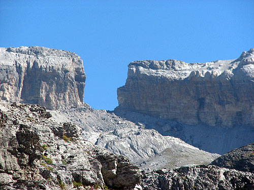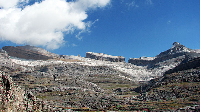 | A mida que anem avançant i pujant va canviant la visió que tenim de la part francesa d'Ordesa i dels entorns de la bretxa de Roland. I abans d'entrar a la "faja" tornem a mirar enrera. |