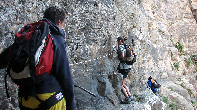 ATENCIÓ: és important informar-se de l'estat de les "clavijas" i portar el material necessari (arnés i dissipador mínim), tot tenint en compte les persones que hi van, l'edat i la seva preparació tècnica. |