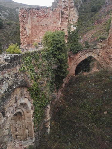 Ben bé no se sap com aguanten els murs, semiinclinats, cansats de tants anys d'espera i desídia. Tampoc ara ni ha cap projecte de rehabilitació. Tot i això, resulta fascinant passejar per aquelles restes. No feia bon dia, vull dir que no feia sol. Plovia, feia vent i encara resultava més enigmàtic i fantasmal. Des del cotxe al monestir vam trigar 25 minuts i vam estar 40 donant-hi voltes entre les pedres.