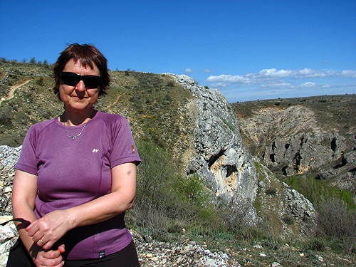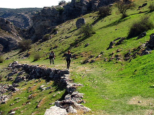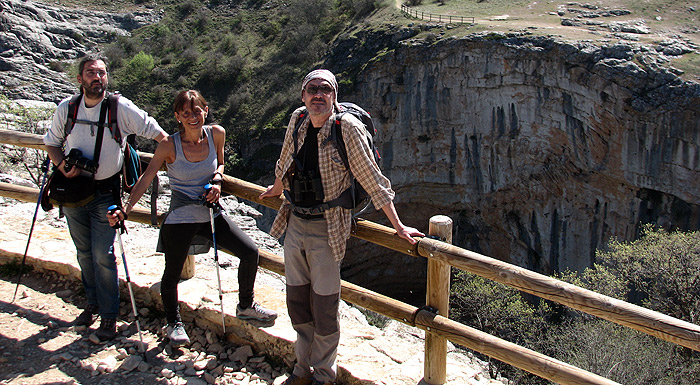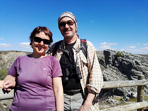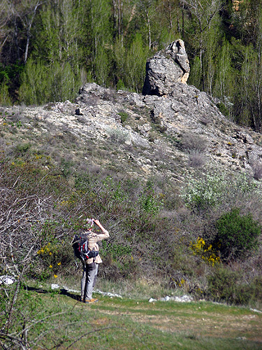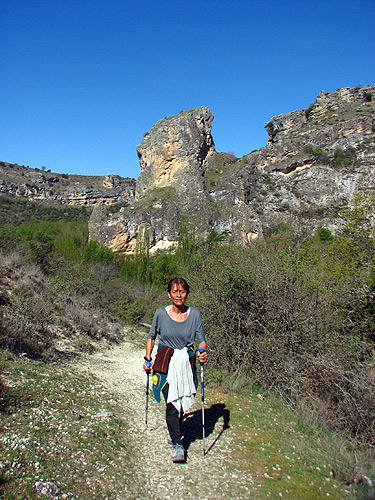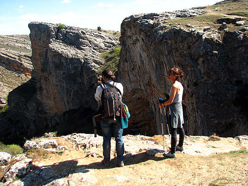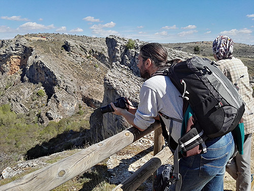 D'entrada una desilusió, el restaurant on preteníem dinar està ple, pleníssim i hem de canviar d'idea. El Josep i la Mari pensen de seguida i decidim dinar a Aguilar de Anguita en un altre molt bon restaurant i on, a més, probarem un ví que el Josep coneix. Tema jalar solucionat comencem a caminar. Deixem el cotxe a l'entrada de Pelegrina (no pugem al castell) i cap a baix al riu. Farem una circular, haurem de tornar a pujar per anar per la zona aixecada i, de tornada anirem per la vall del riu que és on trobem més grups que van a dinar al camp (és dissabte). El desnivell és només de 100 metres.