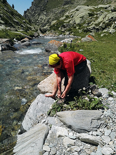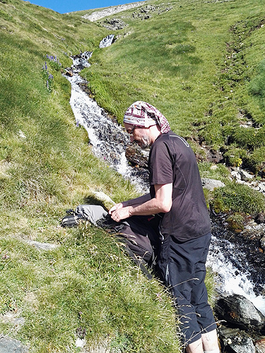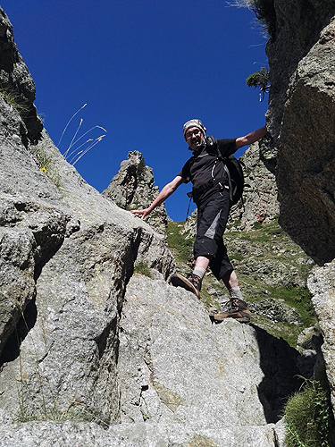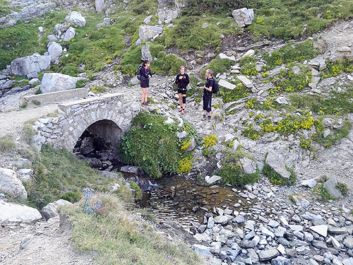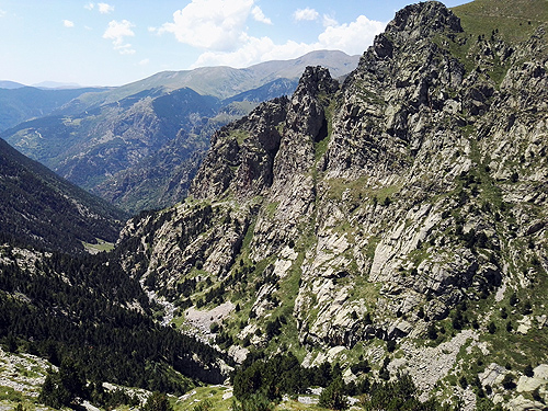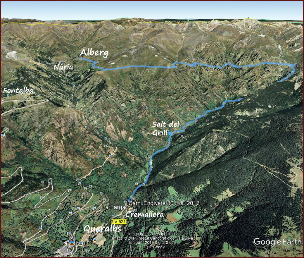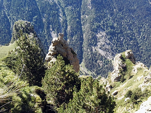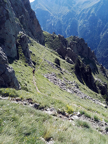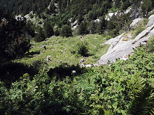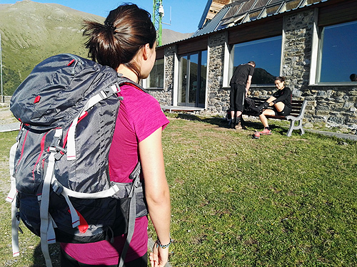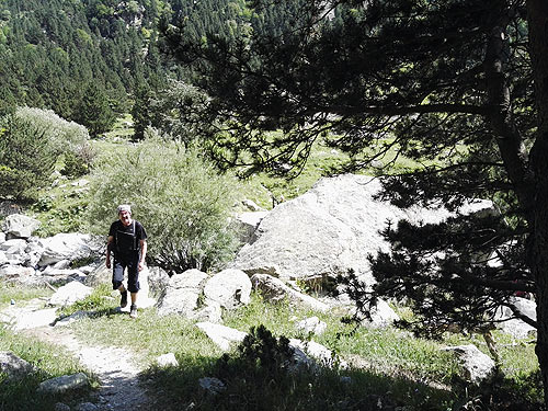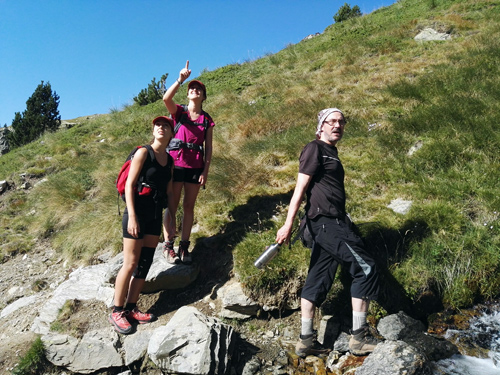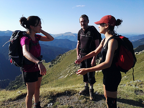Havíem dormit a l'alberg del Pic de l'Àliga (de la Xarxa de la Generalitat) i després d'esmorzar començava l'excursió. L'havíem fet fa ja uns anys, el juny del 2008, però en dues etapes i dormint a Coma de Vaca. El pas dels anys havia deixat en nosaltres un fals mite, que no hi havia desnivell. Com que l'alberg i el refugi estan més o menys a la mateixa alçada, ... doncs era pla. Res més allunyat de la realitat. Ja ho anàvem notant mentre caminàvem, i molt, però ho confirmava el GPS: hem fet un desnivell positiu de 629 metres. I ens faltava la baixada... La Berta va ser la que més va patir, els altres la van haver d'esperar molts cops. Sort que som família, el company i les dues filles que ara, després de anys de "renegar" tornen a la muntanya contentes, amb nosaltres i amb els seus amics.
