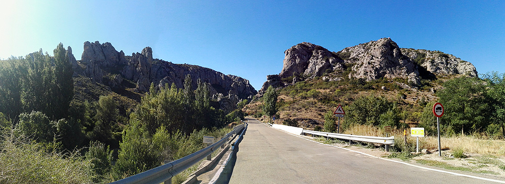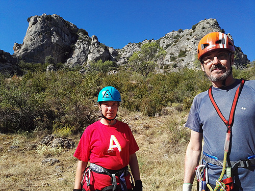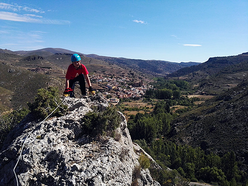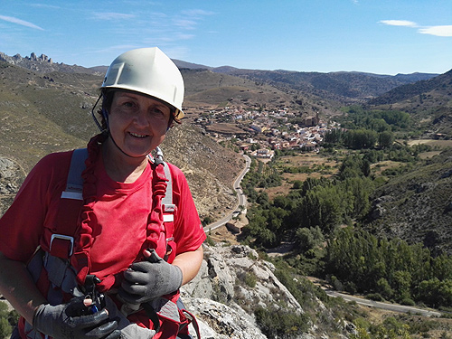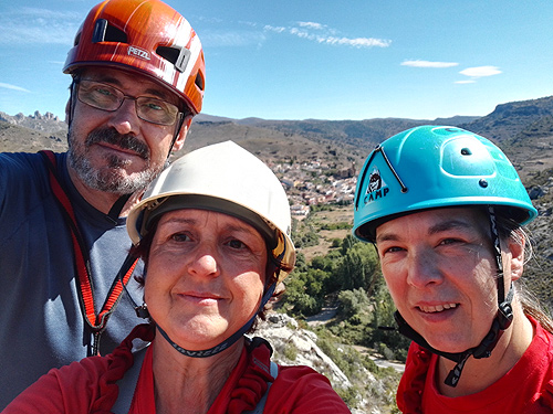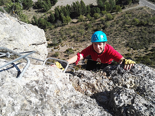 Només vam anar la Silvia, el Lluís i la Berta a fer la Hipocrática, una ferrada situada al poble de Calcena a la comarca de l'Aranda (Saragossa). Una ferrada enmig de centenars de vies d'escalada que donen vida al poble. Disposa d'un alberg municipal centrat en les necessitats d'escaladors, ferrateros i visitants. És una ferrada fàcil, però té un passet... que costa de passar (una mica extraplomat i amb els ferros de mal agafar). La resta, cap problema. L'aproximació és minima i la baixada no massa llarga. Calcena es troba a la falda sud del Moncayo, en una zona amb carreteres plenes de curves i estretes alhora que ple de paisatges fantàstics. Segons d'on vinguis, costa més arribar-hi que fer la ferrada. Des de Calatayud, per exemple 1 hora i 10 minuts, des d'on veníem nosaltres, Aniñón, 1 hora i 20 minuts. |