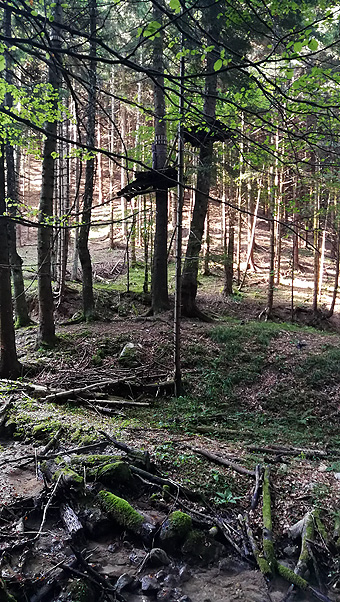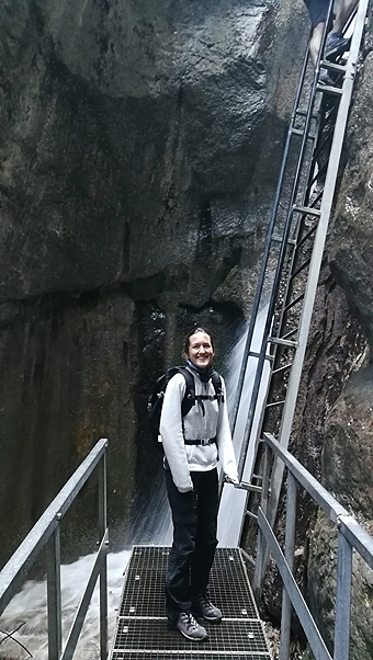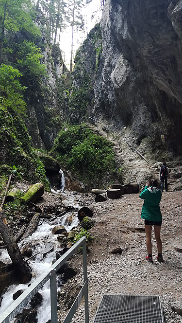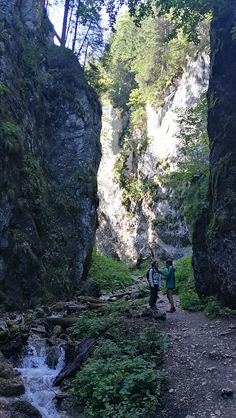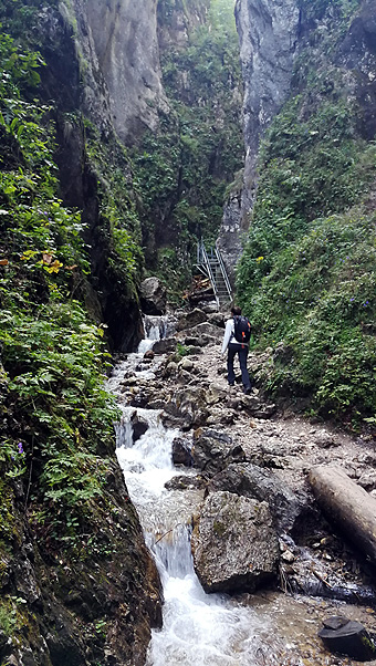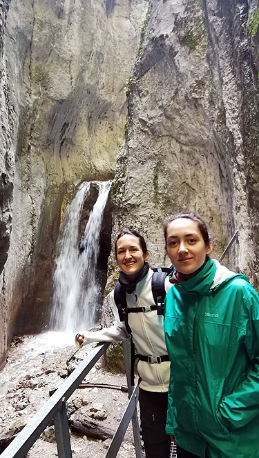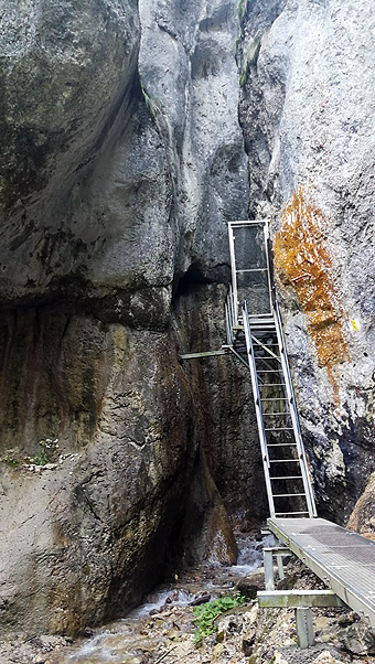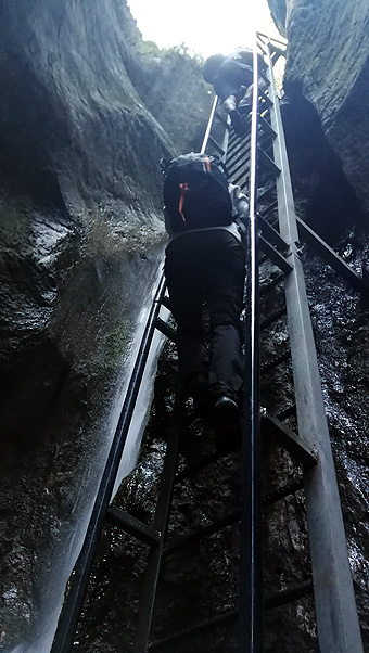 Les 7 escales és una gorja que deu el nom a les escales que hi ha instal·lades per fer el recorregut. Com diu el subtítol, només hi van anar la Rut, la Marta i el Lluís. La Berta, amb el genoll molt magullat, només va fer una petita volta pels primers metres de la vall i pel poble.
