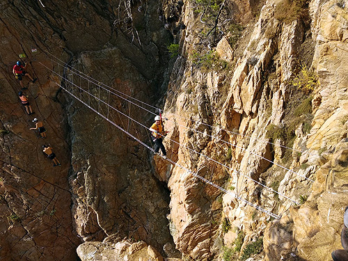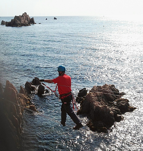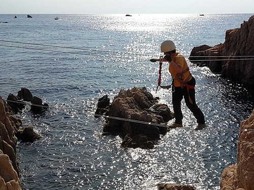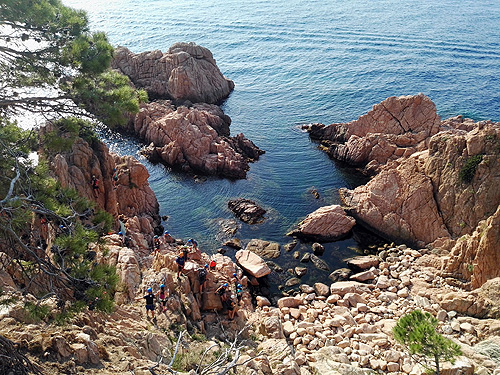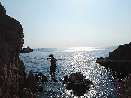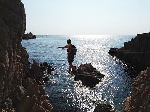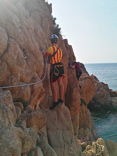 En aquesta sortida érem la Sílvia, l'Edu, en Pau, el Lluís i jo, la Berta. Hi havia molta, molta gent i, malgrat l'incident ens va agradar molt. La de la Cala del Molí, a Sant Feliu de Guixols, és una ferrada aèria, que passa per sobre del mar de cala en cala, fent moltes giragonces. Dona per a fotos superespectaculars. Millor fer-la entresetmana i no quan fa molta calor.