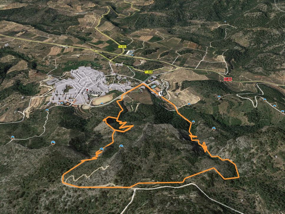 Hem de seguir crestejant fins a trobar el camí que baixa del coll de Llena (el mateix camí que hem fet abans). A Tivissa sortim al costat del camp de futbol i hem de tornar al carrer de la Foig, on tenim el cotxe.