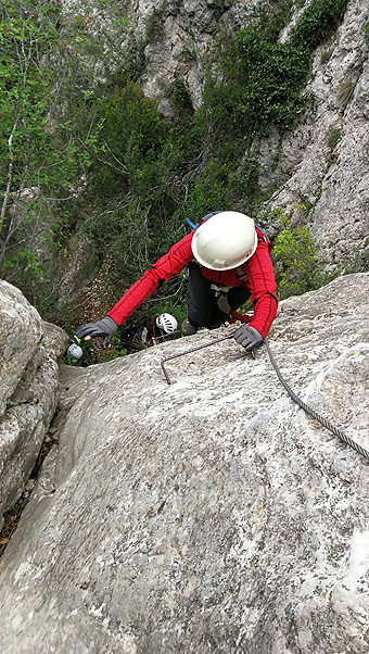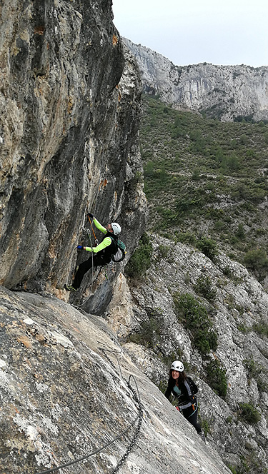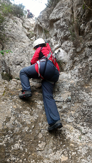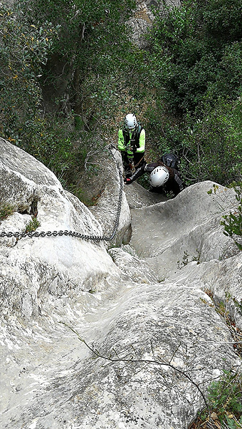 S'ascendeix el primer ressalt d'uns 40 metres i seguint sempre pel barranc, ens trobem 4 més de 12, 18, 15 i 15 metres. Entre mig, es va caminant. Dificultat: baixa.
