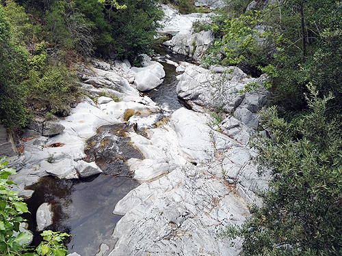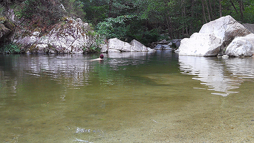 Volem dinar al restaurant del Santuari però n'està massa ple i dinem al prat de davant. La tarda la dediquem a anar a dos dels molts gorgs (la majoria no visitables) que hi ha a Maçanet: el de la Farga i el de les Dones (el més xulo i on em banyo), tots dos al riu Armera. |