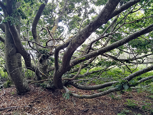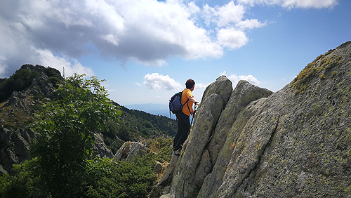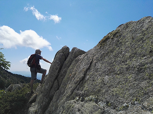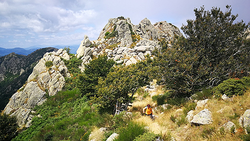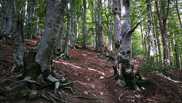 L'arribada al Coll de Sant Martí i al Roc de la Frausa la fem per la banda francesa enmig d'una gran fageda, preciós. I ja al coll, les bones vistes de la Garrotxa i l'Alt Empordà. Comença aquí la carena de roques, només cal vigilar no deixar el camí i enfilar-se massa per si no es pot baixar després. Del Moixer al coll de Pous hi ha una carretera empinada, però és millor anar també pel bosc, molt més maco i agraït.
