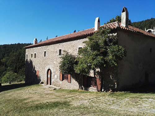 Segona excursió de la nostra estada a Maçanet de Cabrenys, a l'hotel La Quadra. Una matinal que haguéssim pogut convertir en molt més forta si haguéssim pujat caminant des de Maçanet al Santuari de Les Salines, però hi ha carretera (12 quilòmetres) i la vam fer en cotxe. Aquest indret es diu de les Salines perquè aquí estaven les lloses -saleres o salines- damunt les quals els pastors hi posaven la sal que consumien vaques i ovelles quan pujaven a pasturar.