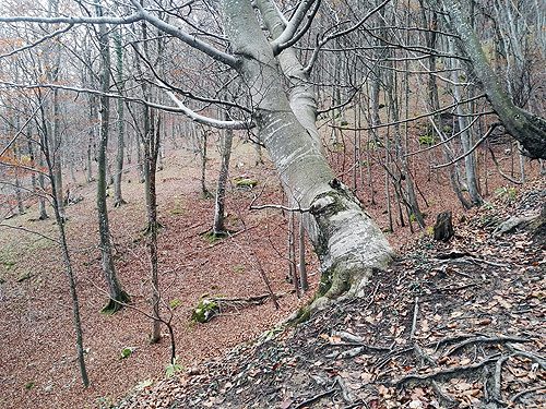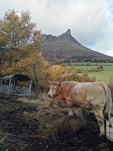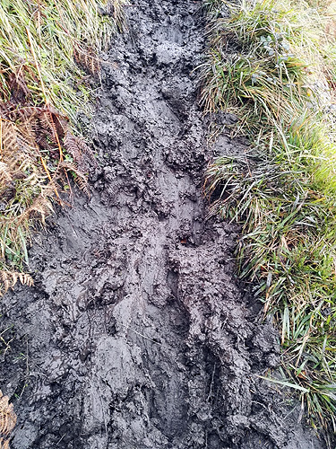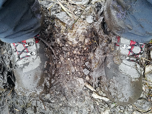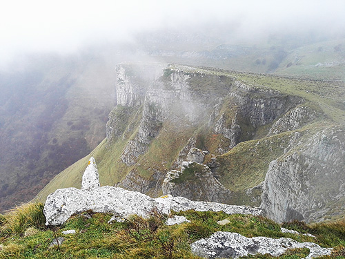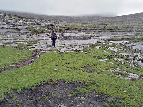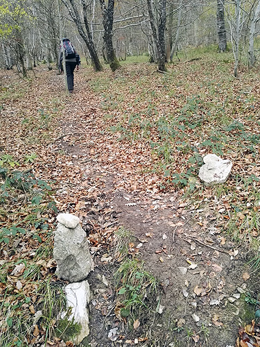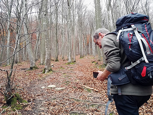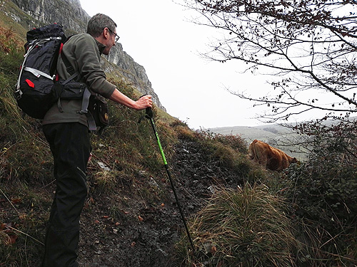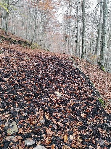 Ens esperaven 632 metres de desnivell i 10,8 quilòmetres així que esmorzem a la primera hora que es pot. Són dos quarts de nou i no fa bon dia, sol, vull dir. Però sembla que amb el pas de les hores, pot obrir-se i aguantar. La realitat serà tot el contrari. A partir de la font los Nudos (quan accedim al pla superior de la muntanya) i, sobre tot, a partir de la font d'Iturrigrori, la pluja no para, i cada cop és més intensa. I no només això, amb la pluja, la d'avui i la d'altres dies, el terra està superenfangat. Ja ho estava a la pujada, quan no plovia, però la baixada, que també és llarga, es fa interminable.