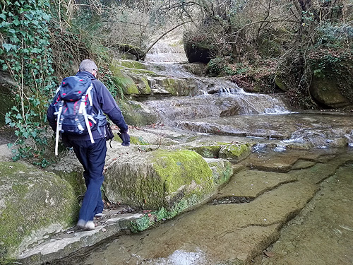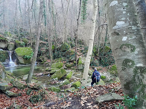 El camí va tant per la dreta com per l'esquerra del Torrent, s'ha de passar diverses vegades i, en algun moment, s'hi camina gairebé per dins. Val a dir que vam fer el Torrent del Puig, a la Garrotxa, gairebé tot sols. Vam trobar dues parelles pujant pels gorgs i si, al final, unes 10 persones més pujant pel Camí Ral entre Olot i Vic. No trobar gent és un què, que segurament no passa a l'estiu, quan ve més de gust banyar-se en els tolls i basses que hi ha al llarg del camí. Per això és una excursió que hem de tornar a fer quan faci més calor. Evidentment el 29 de desembre no era el dia.