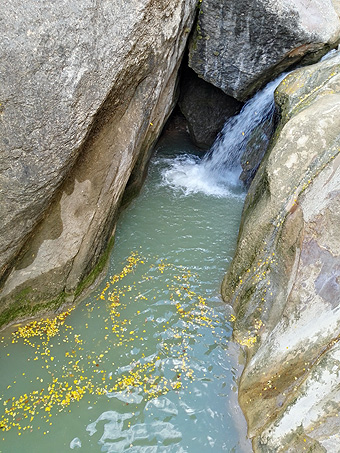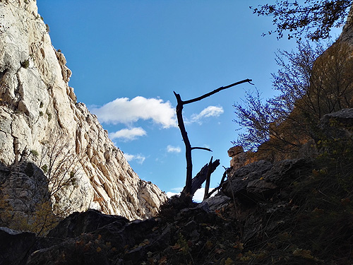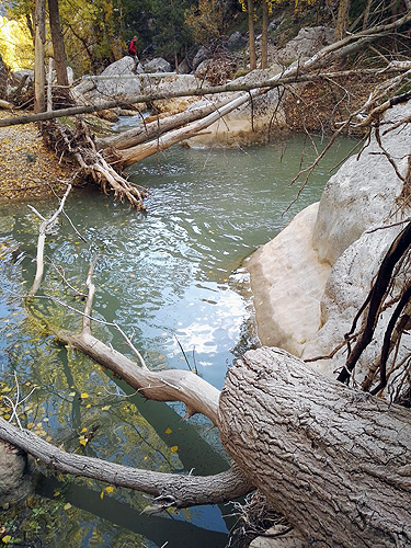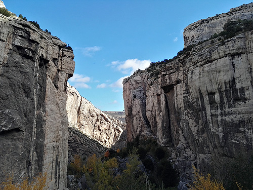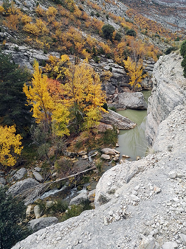 A l'anar una mica d'hora, abans de dos quarts de 10, no vam trobar ningú -cap persona- en tot el camí. Quan vam arribar al final, vam veure l'aparcament ple de cotxes i gent que anava i venia pel camí del riu. El que vam veure són voltors -com a tota la zona- i un ramat de cabres salvatges que ens van passar a menys de 10 metres.