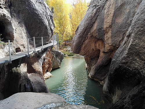 Aquesta ruta forma part de la xarxa de senders al voltant d'Aliaga i del seu Parc Geològic. Nosaltres vam fer només la segona part, la més espectacular però la primera també está molt bé. Es pot començar al barri de Santa Bàrbara i passant per Aliaga s'arriba a l'embassament i a la central abandonada.