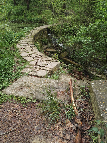 a una bifurcació de camins i sota un petit i dissimulat pont: el Pont de la Bruixa