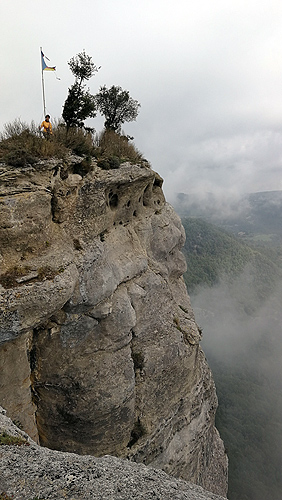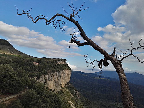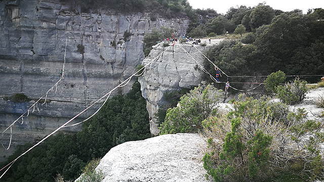 De tornada a Tavertet vam dinar al restaurant Can Miquel. Prou bó, brasa bàsicament. I per acabar el dia, una volteta pel poble -església inclosa- fins al penyasegat. Allà, un grup de nois i noies pràcticaven equilibris sobre cordes penjades al buit. Impressionava.
