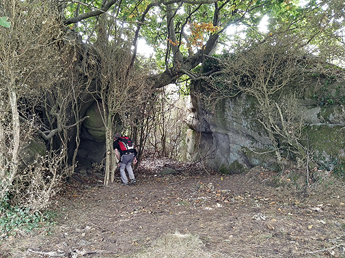 . Bauma de Cortils. De nou al coll seguim cap a l'est (seria ara cap a la dreta). Només hem de seguir el camí, pujareu lleugerament fins al Puig de Cortils (1.196 mts) i poc després trobareu la Bauma de Cortils, gran, maca. Està indicada.